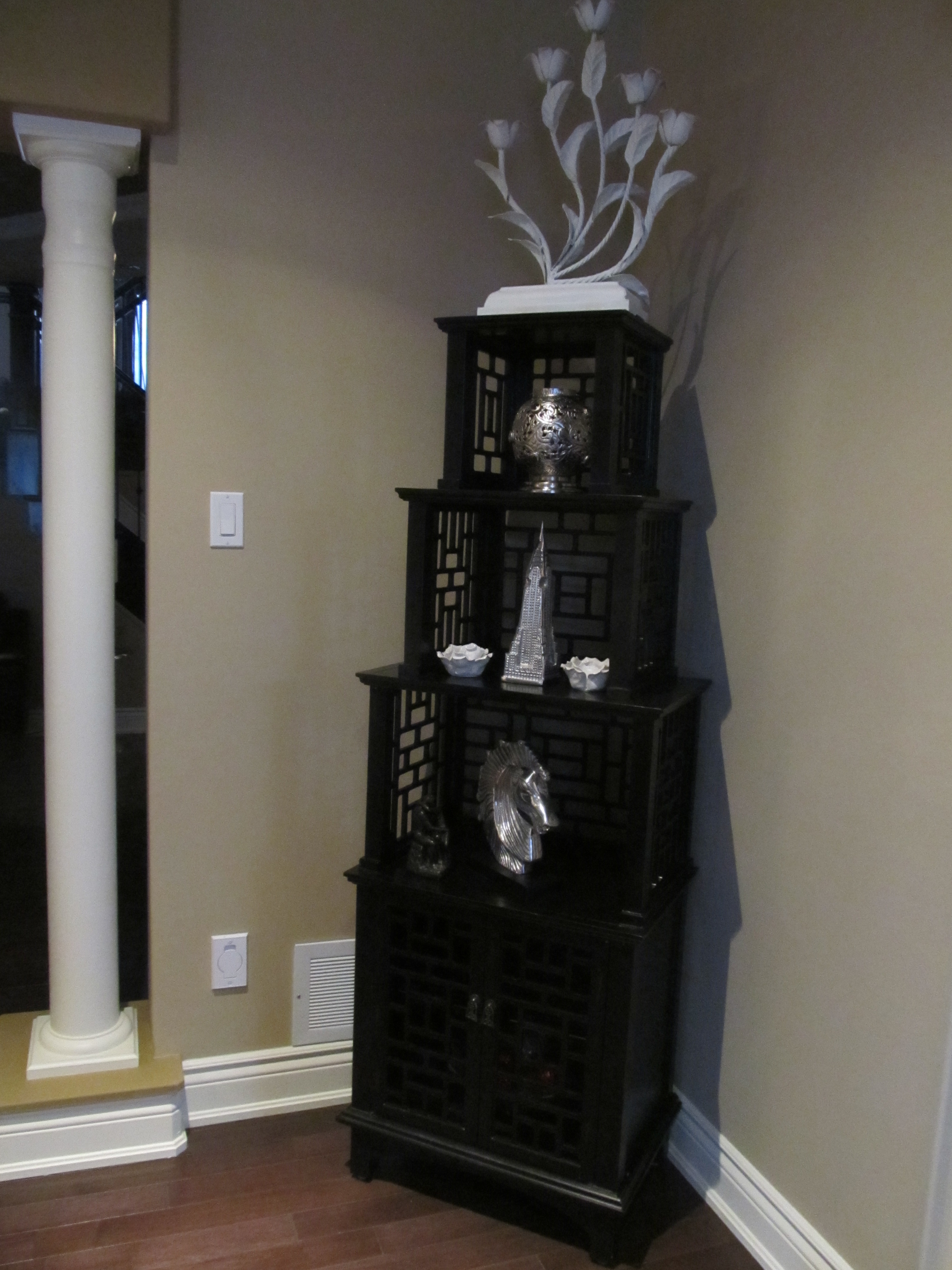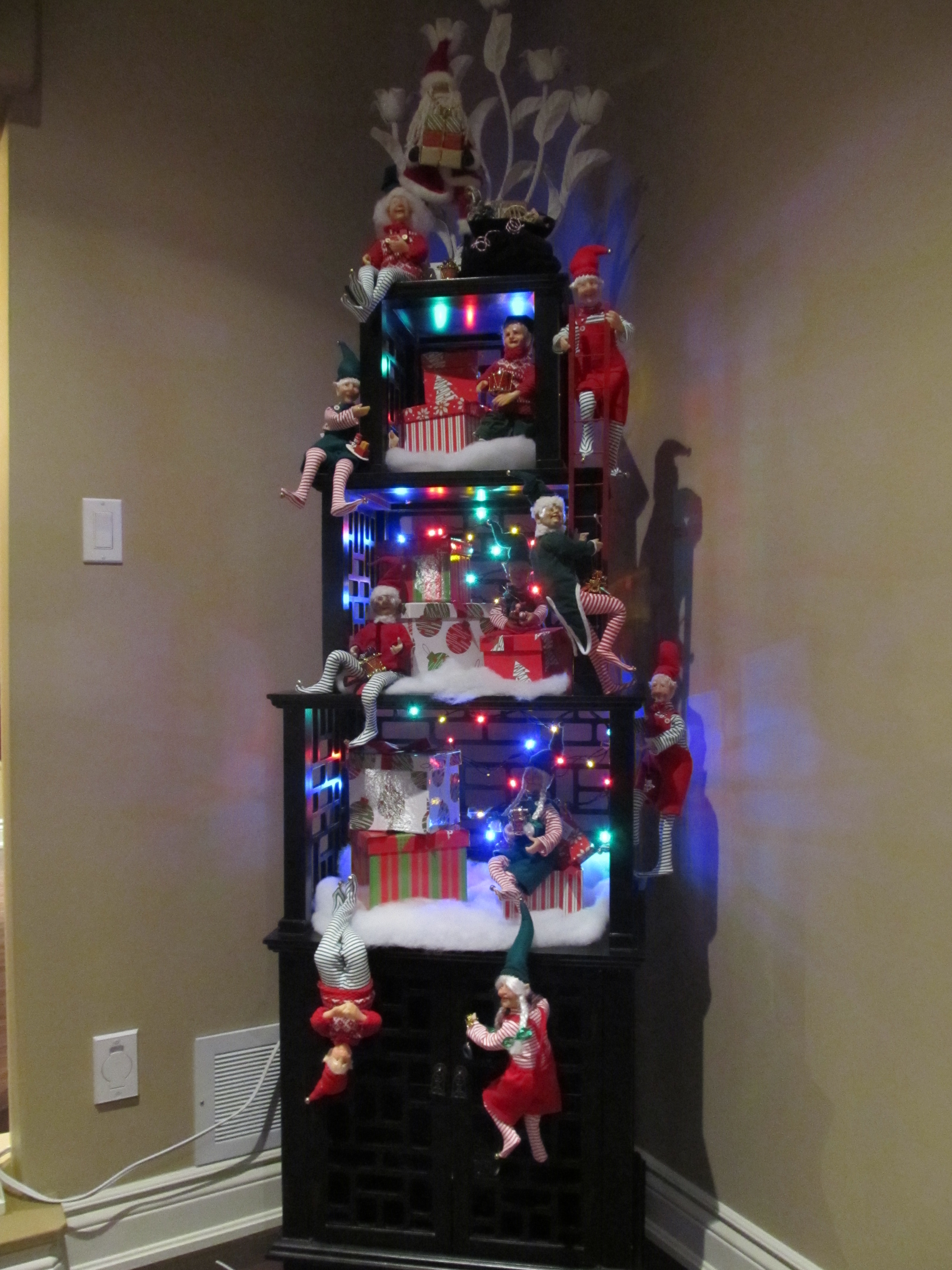 Collector, Giulia, put the elves to work in her new home. Here’s how she displayed them in her front entrance on a shelving unit. Check out the before and after shots. A nice way to welcome guests when they arrive. Thanks for sharing Giulia!
