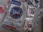 Bake a package white cake and set aside to cool. In the meantime pulse 24 snack size York Peppermint Patties in your food processor and place in a bowl. When your white cake is almost cool,