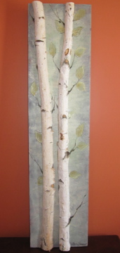 Below is a series of three “Birch Tree” three-dimensional wall art. Sizes range from 48″ x 12″ to 7″ x 16″. I use a combination of wood, acrylic and wax.