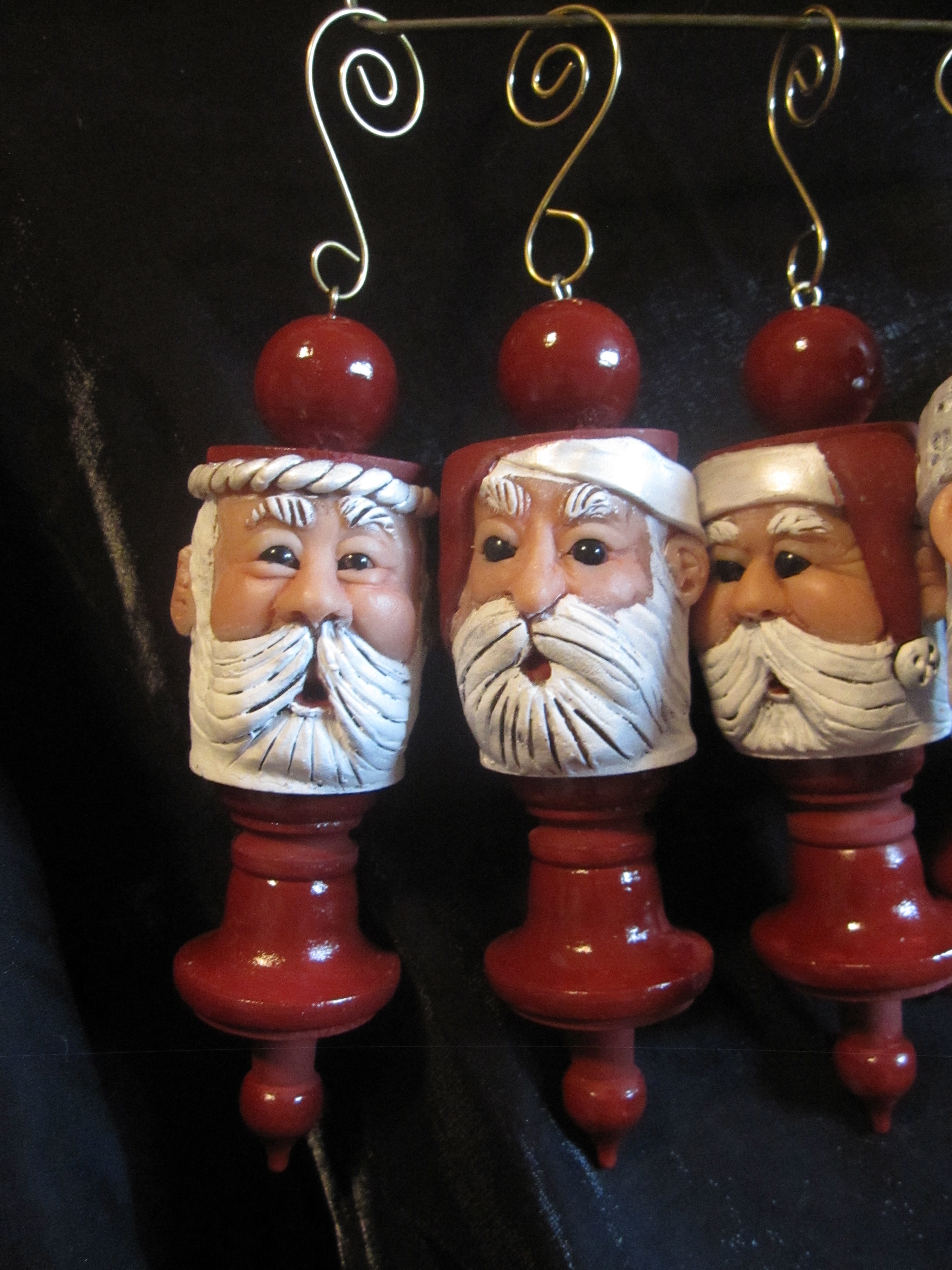 I’m introducing several new products that I hope you will enjoy. First are the hand-sculpted ornaments. These characters are all one-of-a-kind and look amazing on your Christmas tree. Each is hand sculpted in polymer clay directly onto a wood spool. A finial is added to the top and bottom and hand-painted in a rich old world red. A beautiful addition to your collection or as a gift. Along the same lines are my spool sculptures. These Old World Santas are sculpted on vintage wooden spools that range from 4 to 10 inches tall. These antique wooden spools add additional old world charm to my sculptures. They are stand alone pieces that look beautiful on your mantle or table.