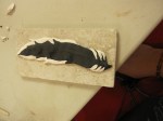 The children’s day camp program at Wabano has been celebrating Eagle Week. I was asked to teach a workshop class, so I designed a simple two hour beginner program where each child was able to sculpt and embellish a feather on a ceramic tile. We used Super Sculpey III in assorted colours. Some of the kids were a little unsure of themselves at first, but take a look at the finished works. Some are pretty impressive. You can learn more about Wabano at http://wabano.rotaryottawasouth.ca/