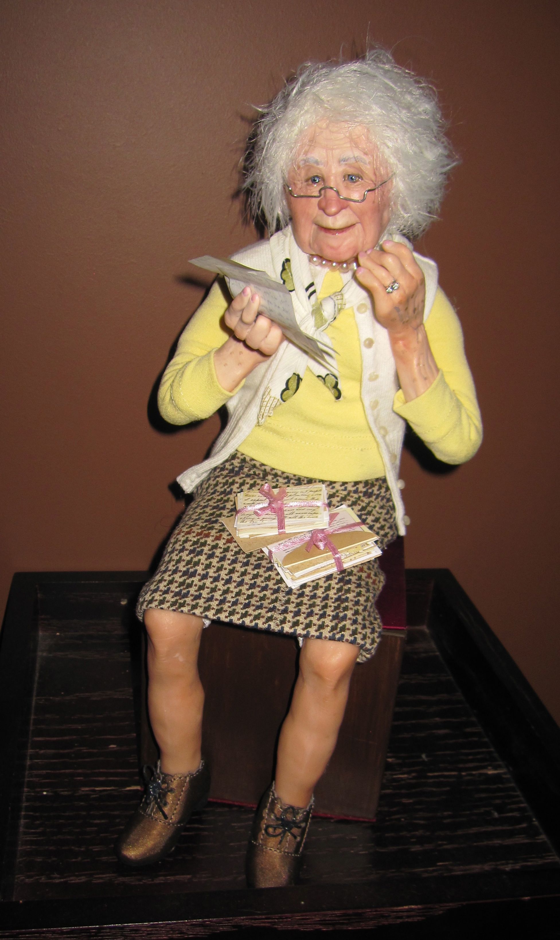 Here’s an example from the Romance collection. This piece is called “Love Letters”. 15″ tall, this character is reminiscing over the letters of her young beau. Many years have passed, but the words still bring her back in the moment.