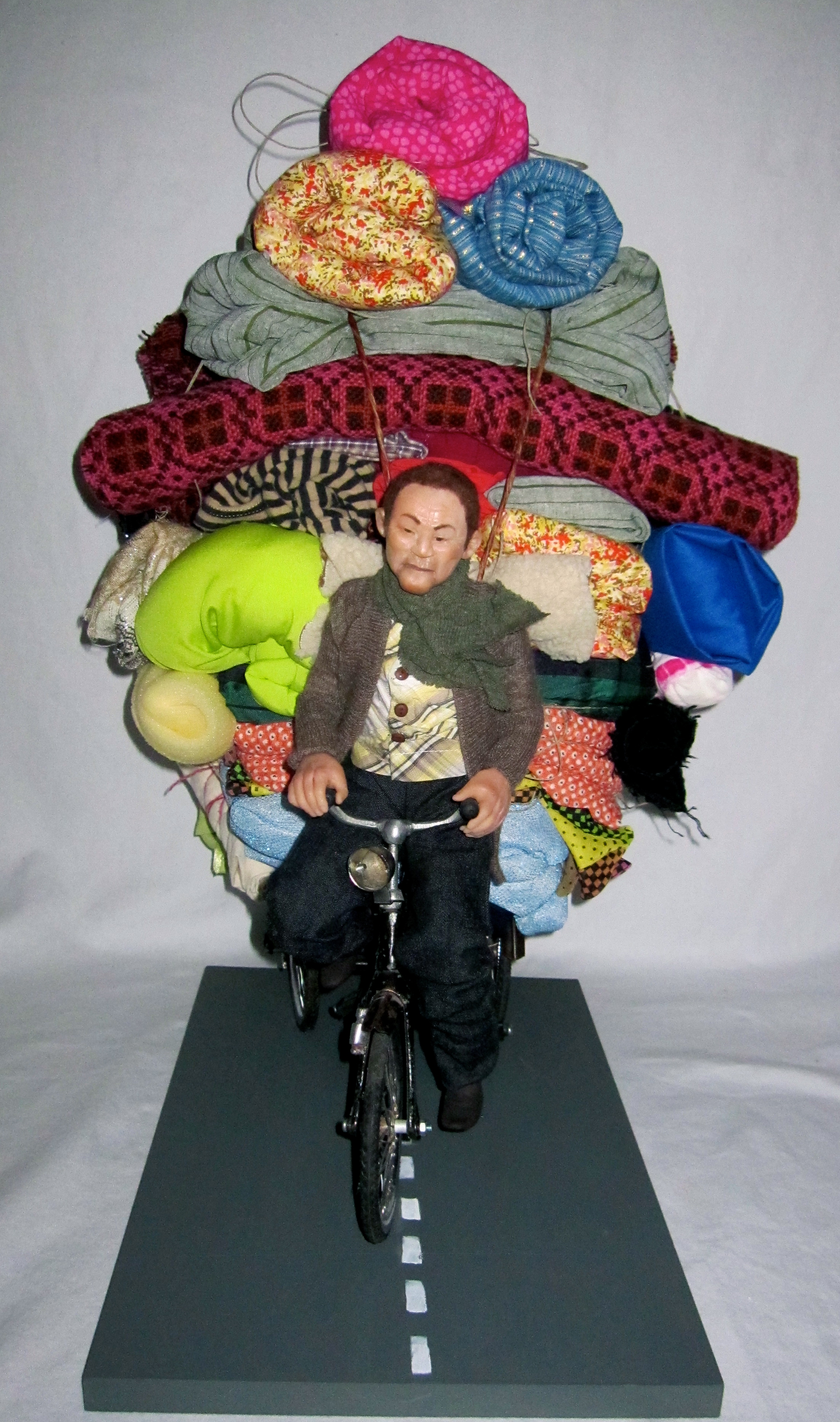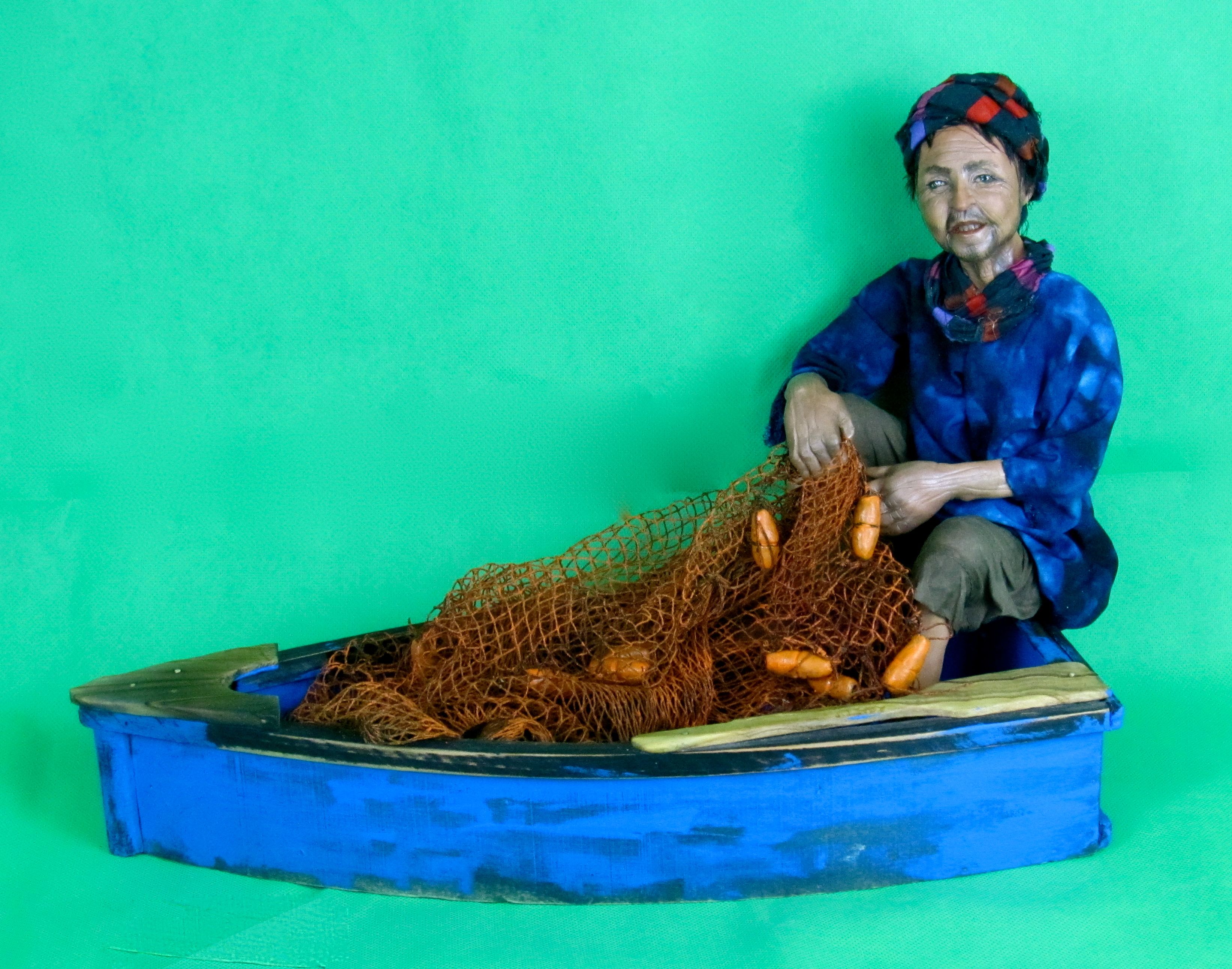 fishing harbours – Yes!! Painted boat in my version of murex blue. Distressed boat. Wondered if it would work. What kind of man do I want to sculpt, old, young but weathered, modern, traditional clothing? This took two days before I even picked up the clay. This piece is a little different than my usual “everyday moments in time” sculptures, but it kind of fits with another piece I did last year . . . “The Bike Totem”. Perhaps this is the beginning of a new series.