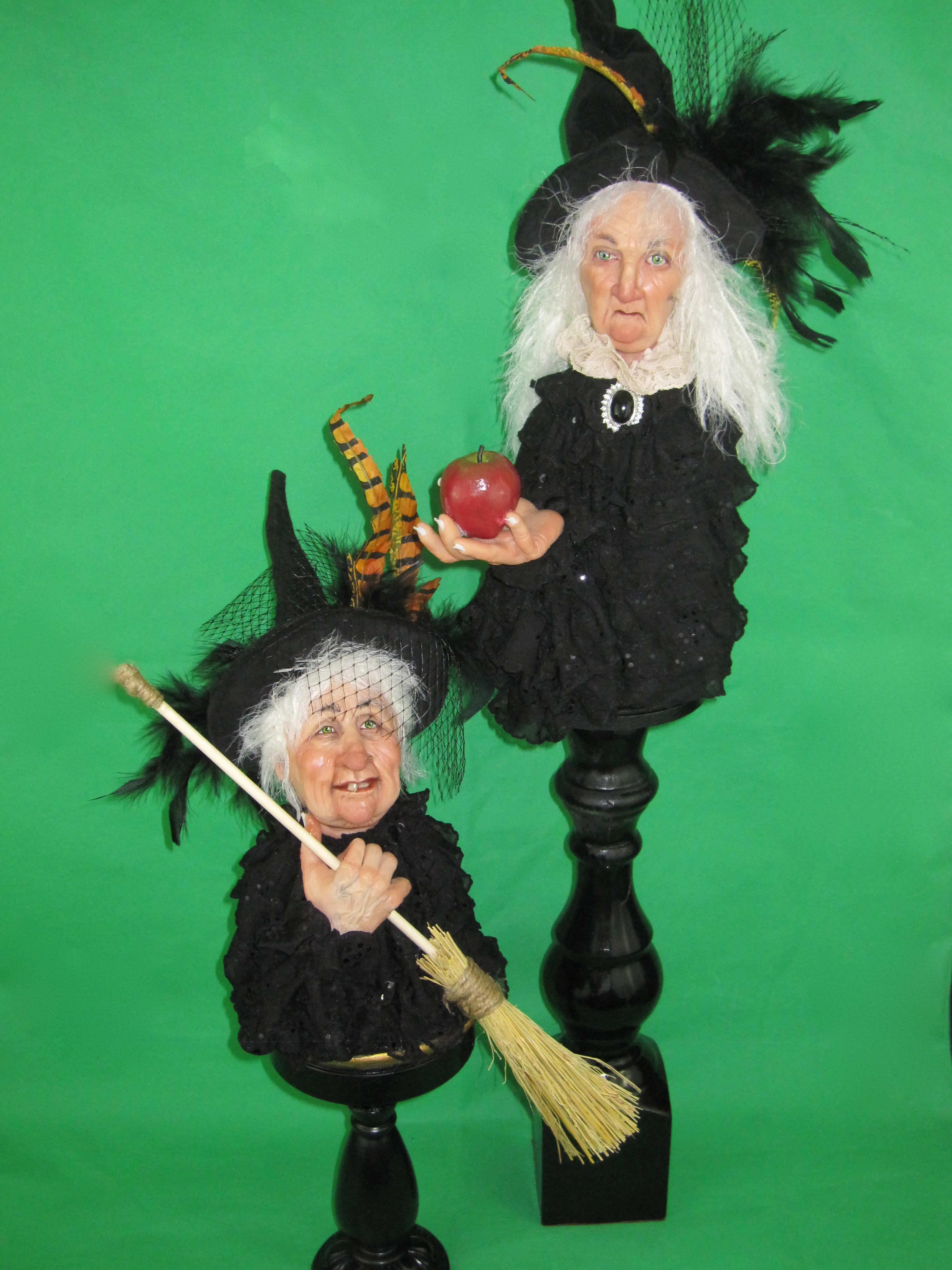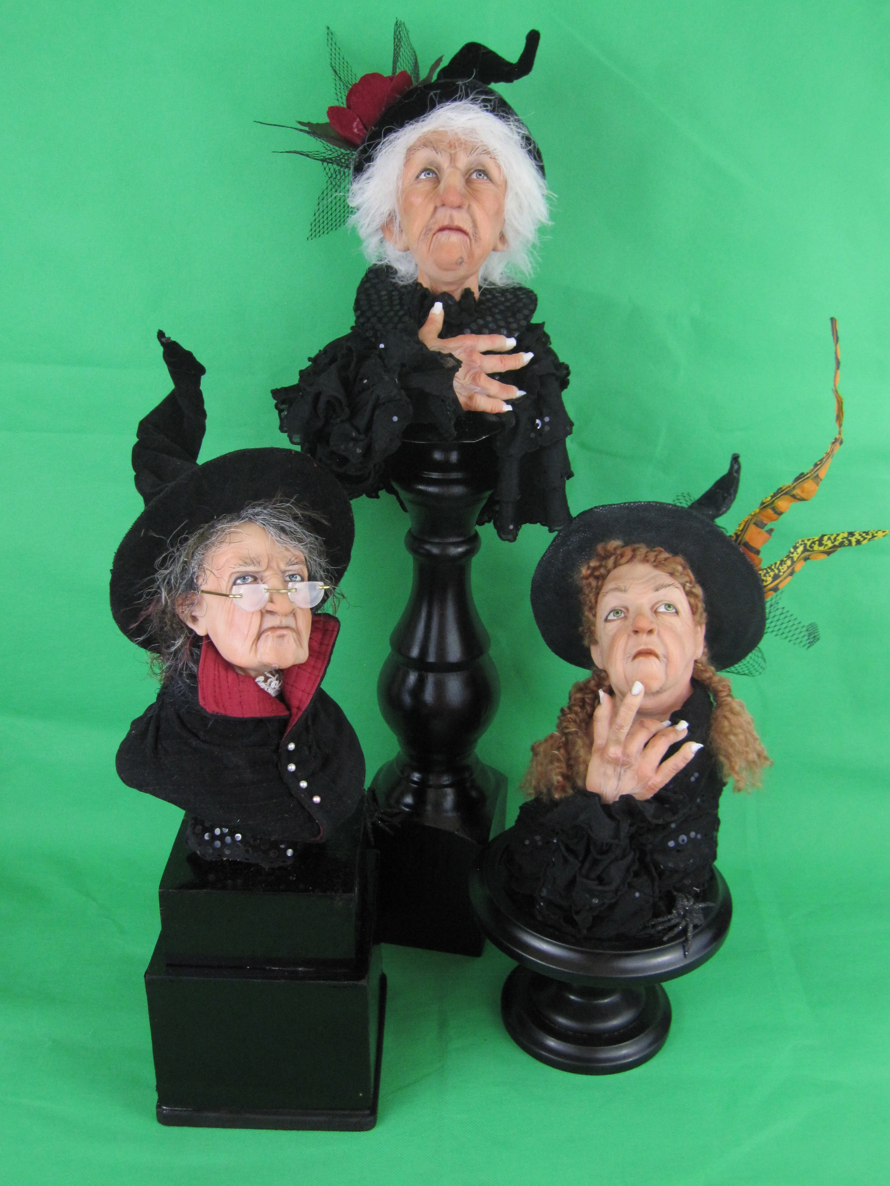 Thanks to literature, film and television shows like BeWitched, Sabrina the Teenage Witch, Hocus Pocus and Witches of Eastwick – just to name a few – we’ve feared them, envied them or have been utterly enchanted by them. I’m no exception. This time of year always brings out my inner “Wicca Goddess” and I can’t help but create a few sculptures of these women who in their ugliness are so beautiful. This year I’ve created witch busts rather than the whole figure. What I love about creating these character busts is that I am able to focus completely on the facial expressions, drawing out their personalities. What started as just a couple of witches turned into six busts. Three witch
