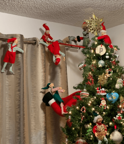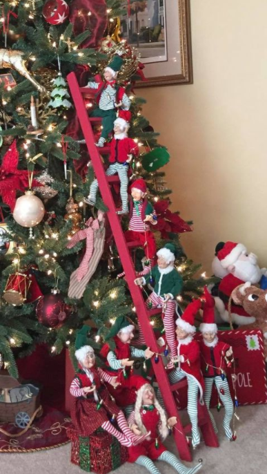 My clients send me photos of how they decorate with the elves. Here are a few photos that will start you thinking about decorating your home for the holidays.