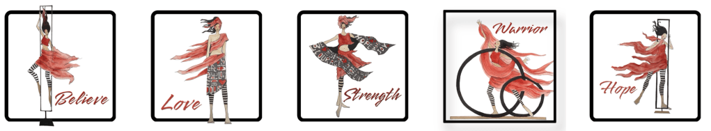 The next Red Dress Gala takes place in February 2024 and because of the success of including art in the fundraising experience, 12 artists have been selected to participate in this next event. The selection process for the event started at the end of 2022 where artists were asked to submit sketches or photos for the jurying committee to review. Below are the sketches I submitted, from which the committee selected “Strength”.